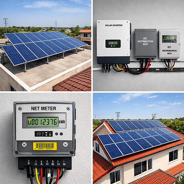 A comprehensive 10kW On-Grid Solar Power Plant designed for high-performance residential and commercial energy generation. This system features high-efficiency Monocrystalline/Polycrystalline solar panels, a robust 10kW Three-phase String Inverter, a durable galvanized mounting structure, and pre-wired ACDB/DCDB protection boxes. It is the ideal energy solution for large households or offices with monthly electricity bills exceeding ₹7,000, offering significant long-term savings through net metering.